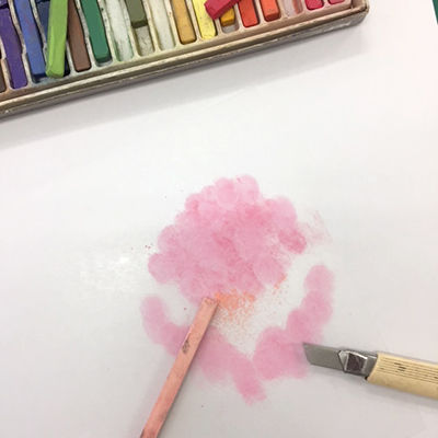 パステルは粉をポンポンとティッシュ等でたたき付けていきます。