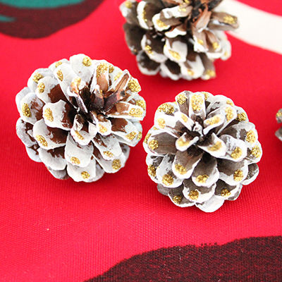 ホワイトのアクリル絵の具でペイントした松ぼっくりに載せてみたり〜