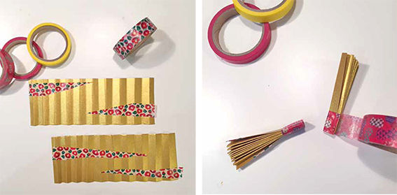 ①金の画用紙に斜めに切ったマステを貼る