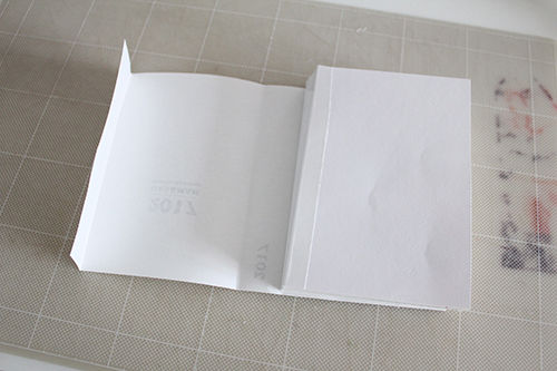 文庫本のように製本した年賀状にカバーを巻けば出来上がり!