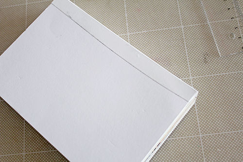 しっかりガムテープを接着します。背表紙の箇所は特に念入りに親指の腹を使ってしっかり何度も扱きます。ハガキ一枚一枚がしっかりとガムテープに接着しているのを扱きながら確認してくださいね。