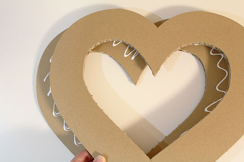 段ボールをハート型に切ります。強度を持たせるために2枚重ねますが、目なりはクロスさせるとより強度が増します。