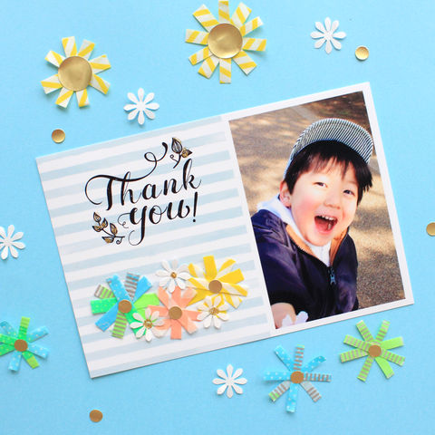 カードはTHANKYOU WORKSのテンプレートを使えば自由にアレンジを楽しめるデザインが揃っているので、センスに自信がない方も簡単でおしゃれに仕上がるので オススメですよ。