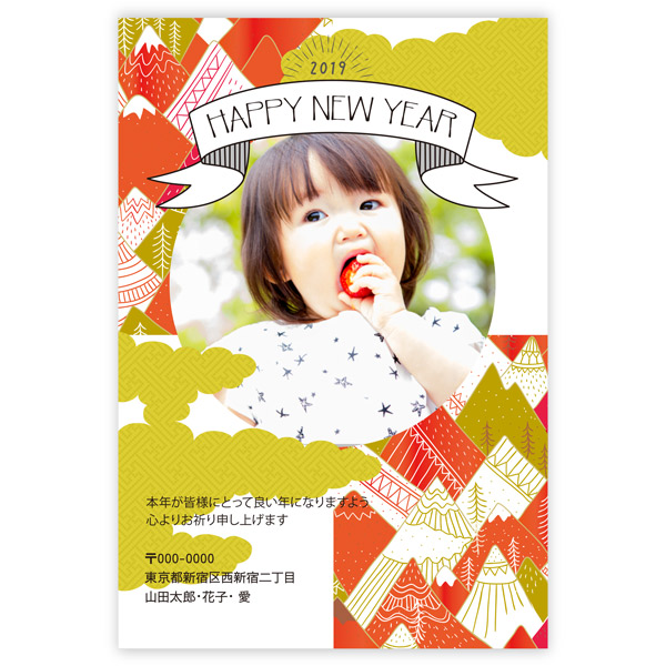 本日ご紹介するTHANKYOU WORKSの年賀状テンプレートのデザインは、山が連なる和モダンなコチラ。
